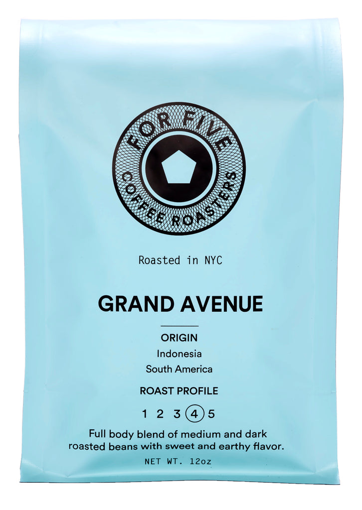 Grand Avenue, our current staff pick, is sourced from Indonesia + South America, and features a full body blend of medium and dark roasted beans with sweet and earthy flavor. Medium to dark (4/5) roast profile.