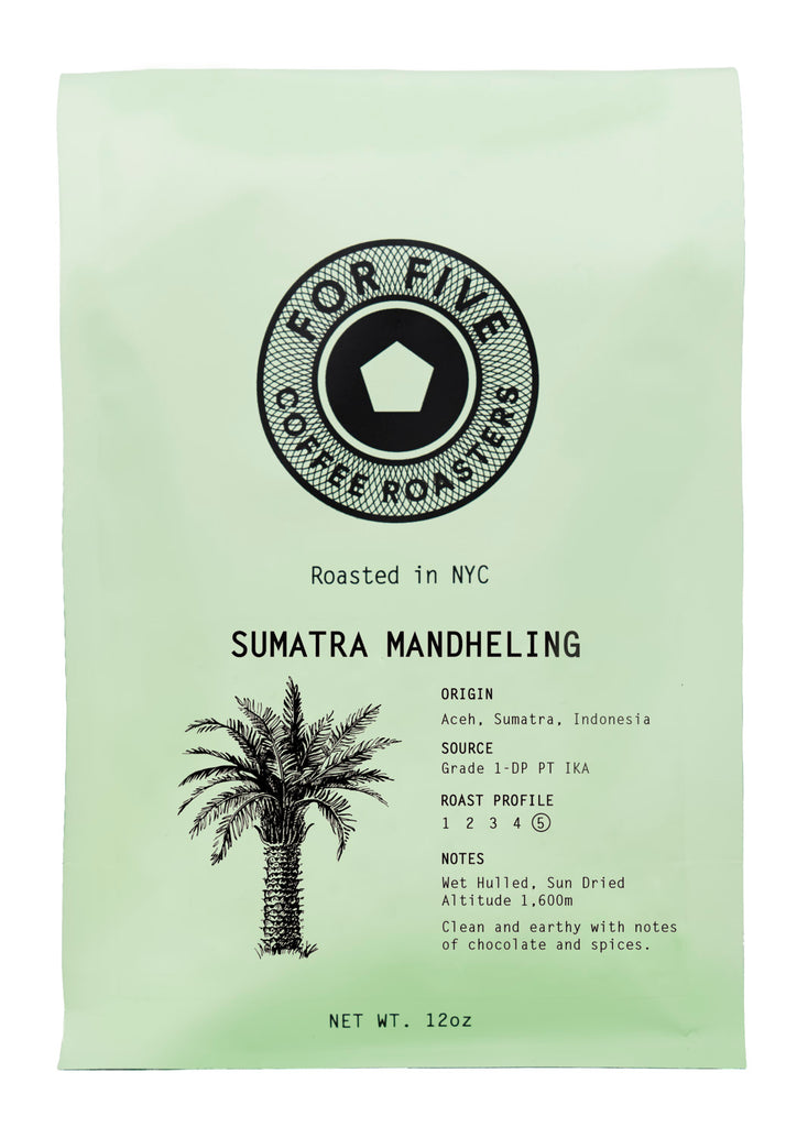 Sumatra Mandheling, a single origin sourced from Aceh, Sumatra, Indonesia, is clean and earthy with notes of chocolate and spices. Dark (5/5) roast profile.