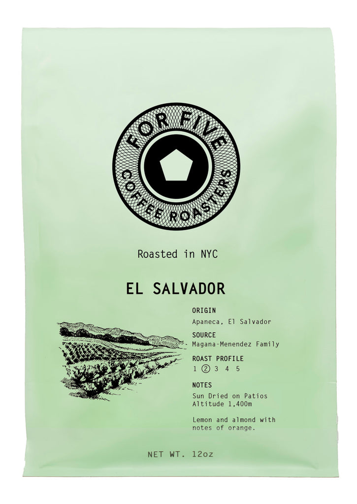 El Salvador, sourced from Apaneca, El Salvador, tastes of lemon and almond with notes of orange. Light to medium (2/5) roast profile.